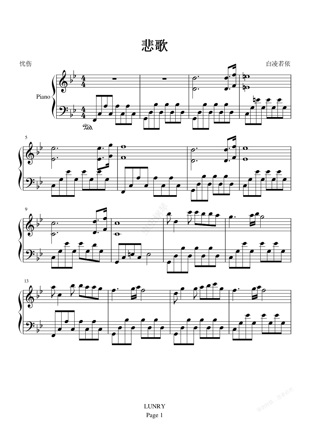 钢琴谱:夜雪初积、琉璃易泣
