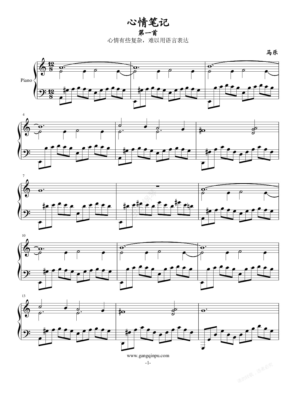 钢琴谱:心情笔记——第一首