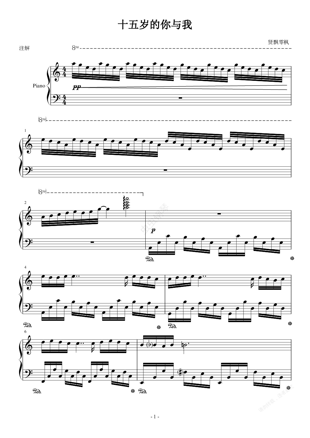 钢琴谱:十五岁的你与我