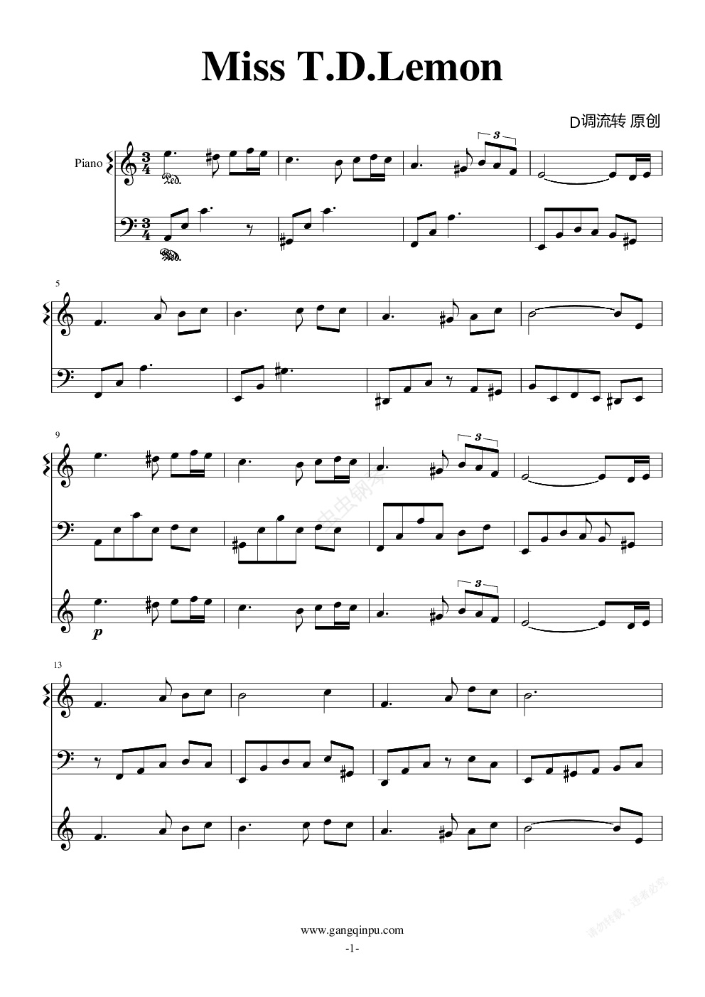 至于曲谱名字,海上钢琴师叫,我的简称是T.D.,仅此而已,还是写的自己的