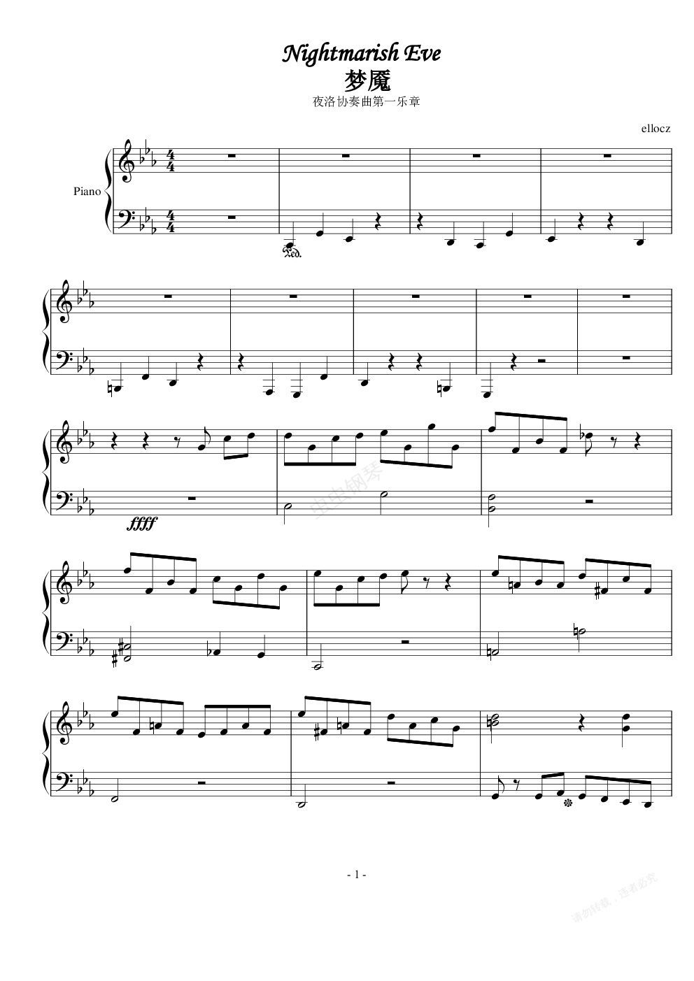 钢琴谱:夜洛第一番协奏曲——梦魇