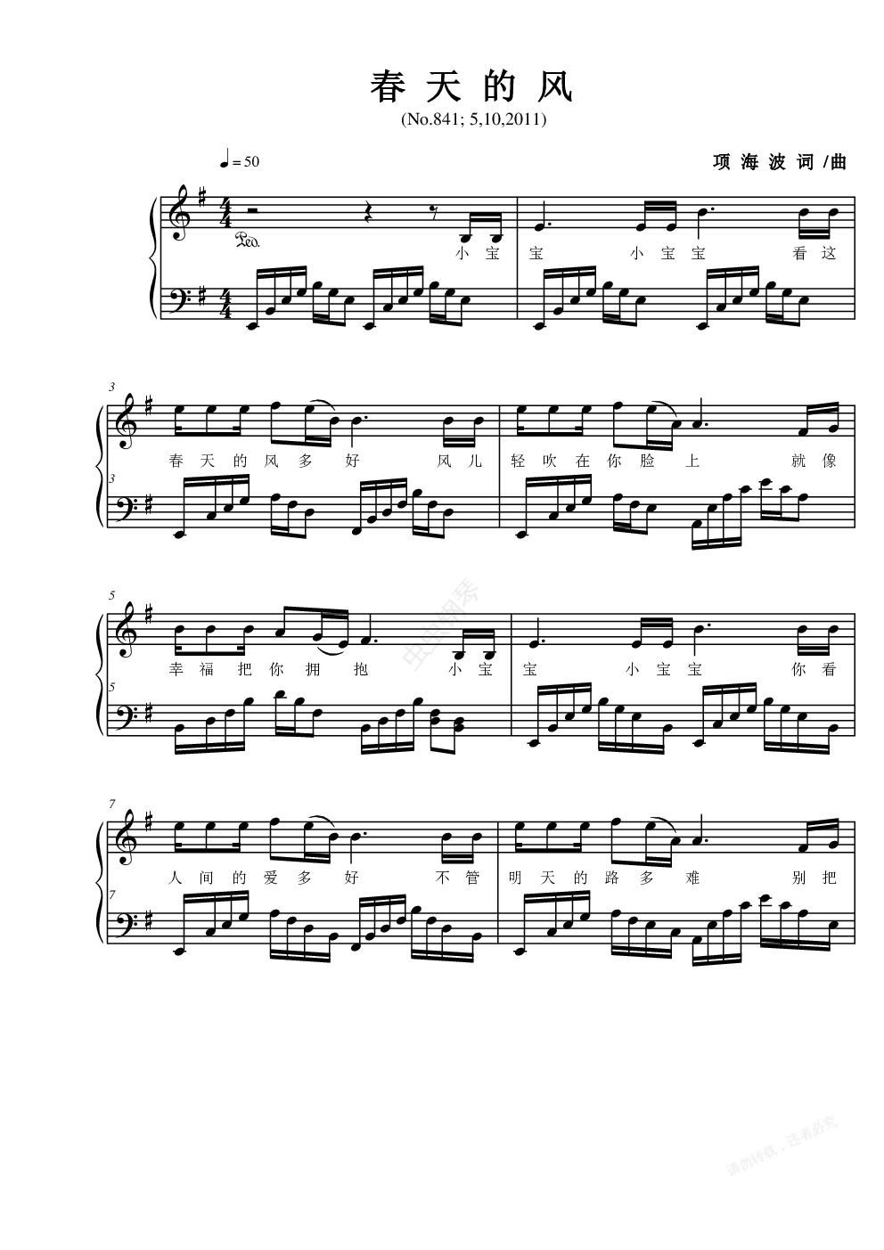 钢琴谱:春风里的宝宝