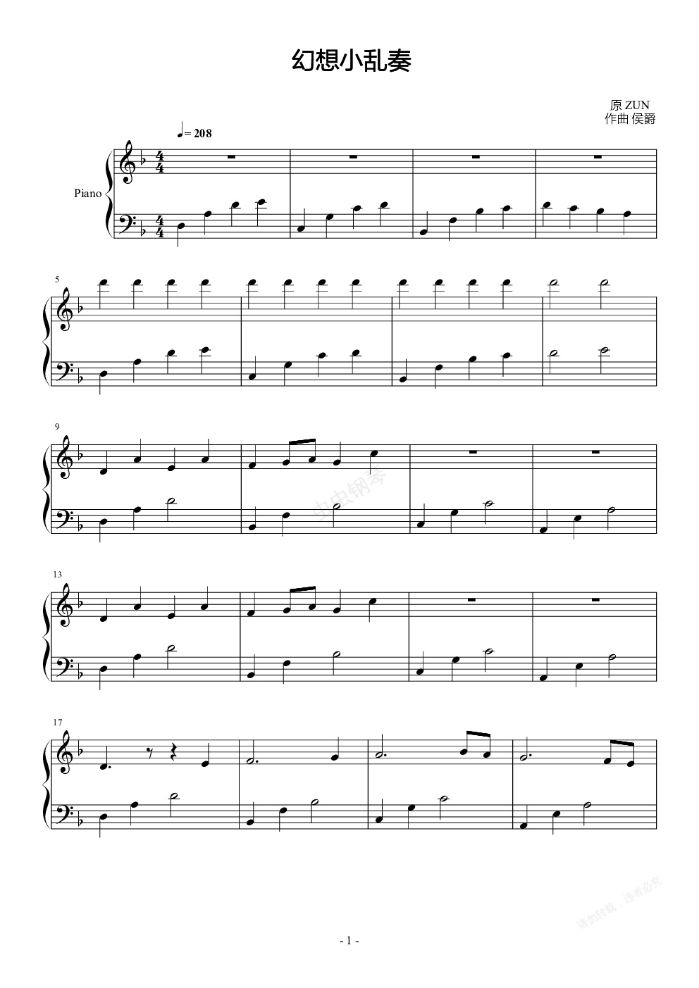 钢琴谱:【东方】原创同人:幻想小乱奏