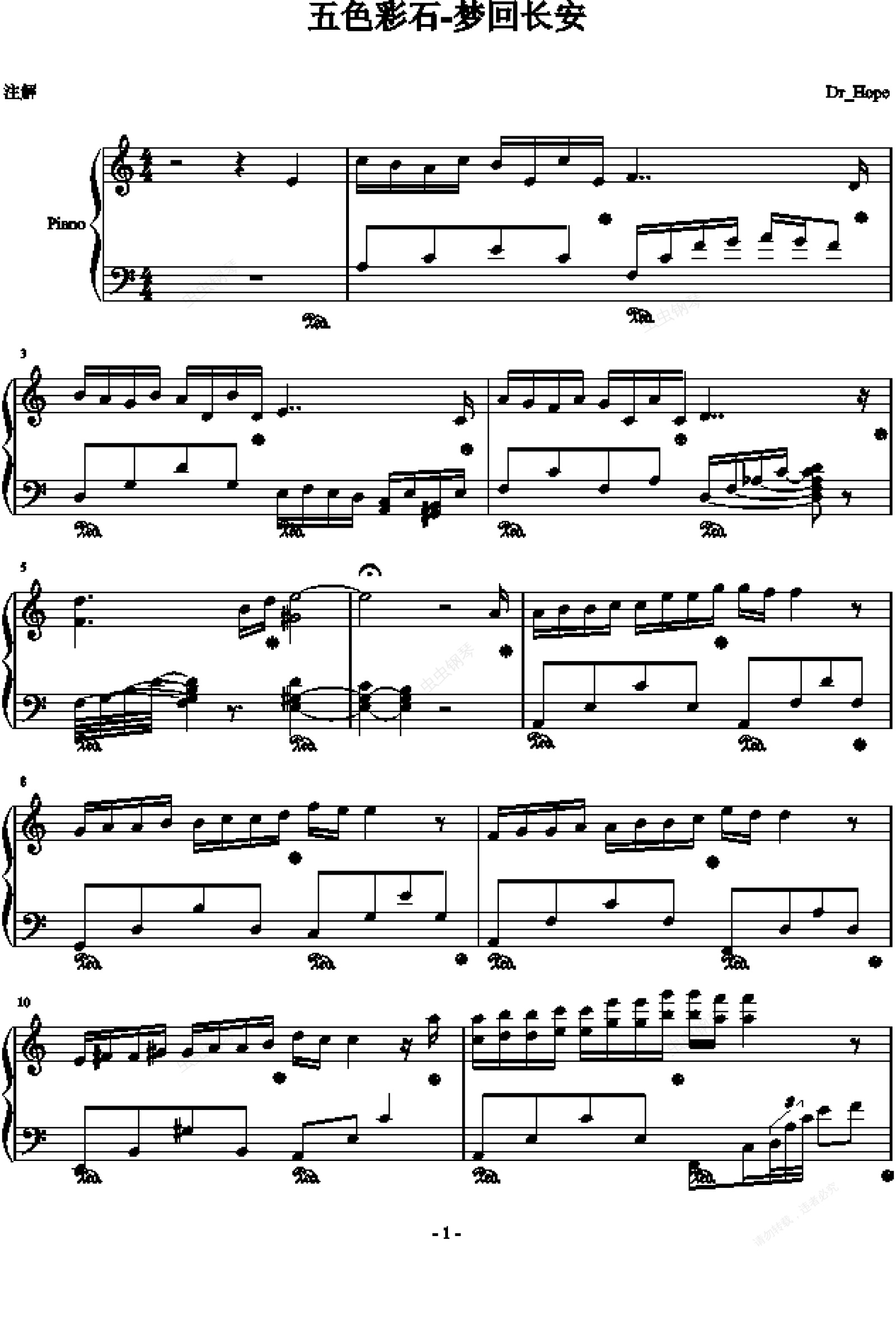 钢琴谱:五色彩石-梦回长安