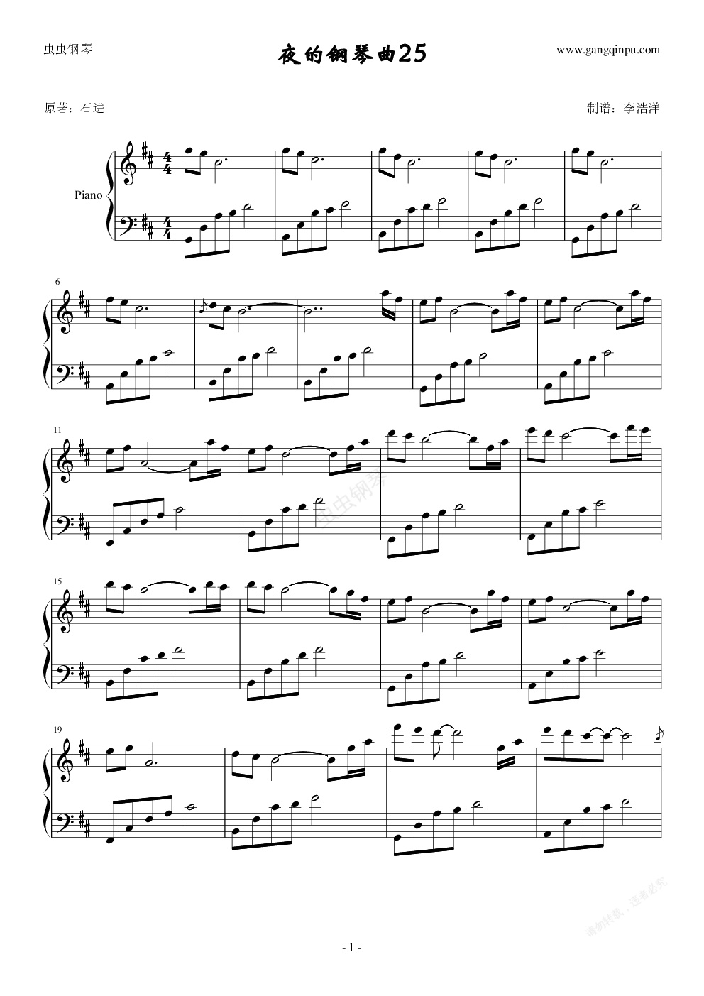 钢琴谱:夜的钢琴曲25
