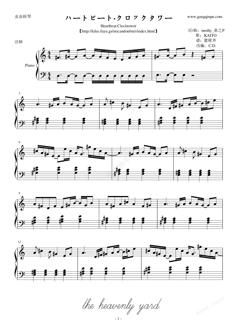 钢琴谱:【KAITO】ハートビート·クロックタワー