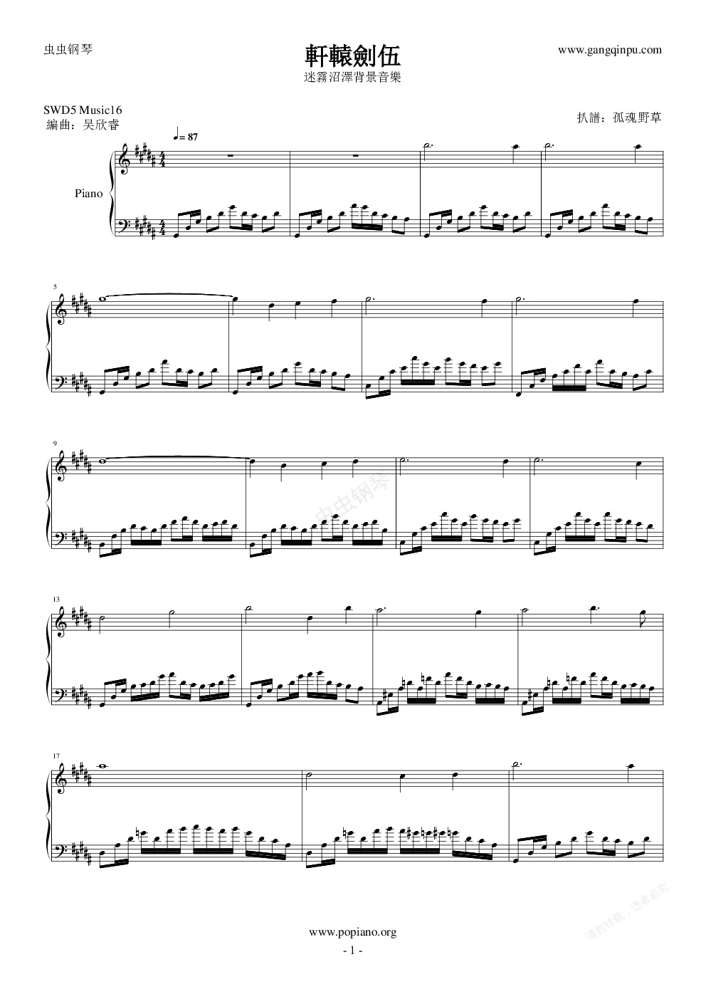 钢琴谱:轩辕剑五-迷雾沼泽背景音乐