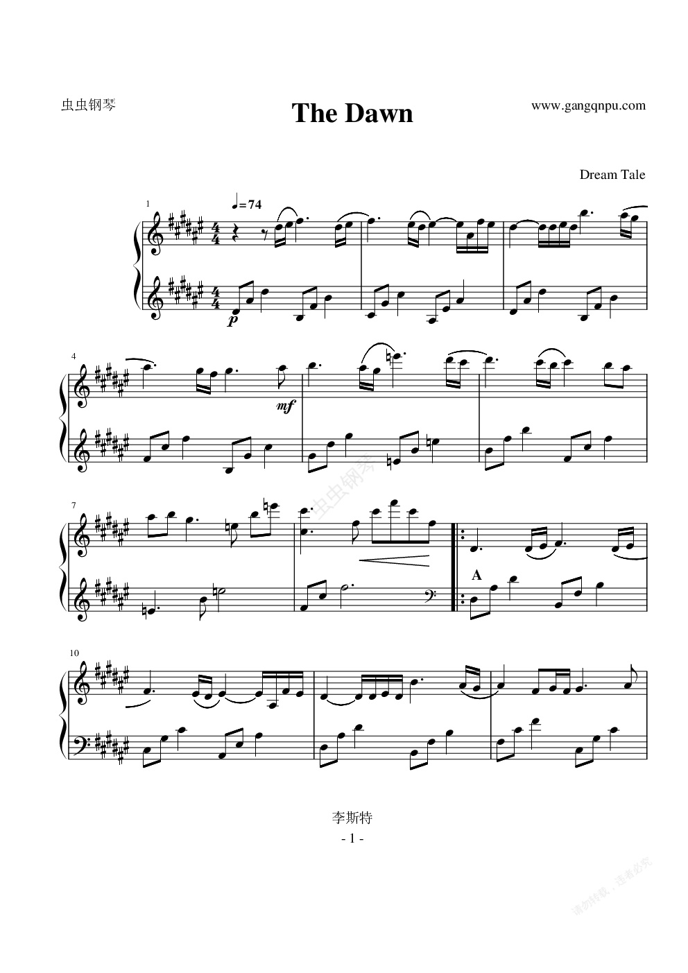 钢琴谱:亡灵序曲(the dawn)