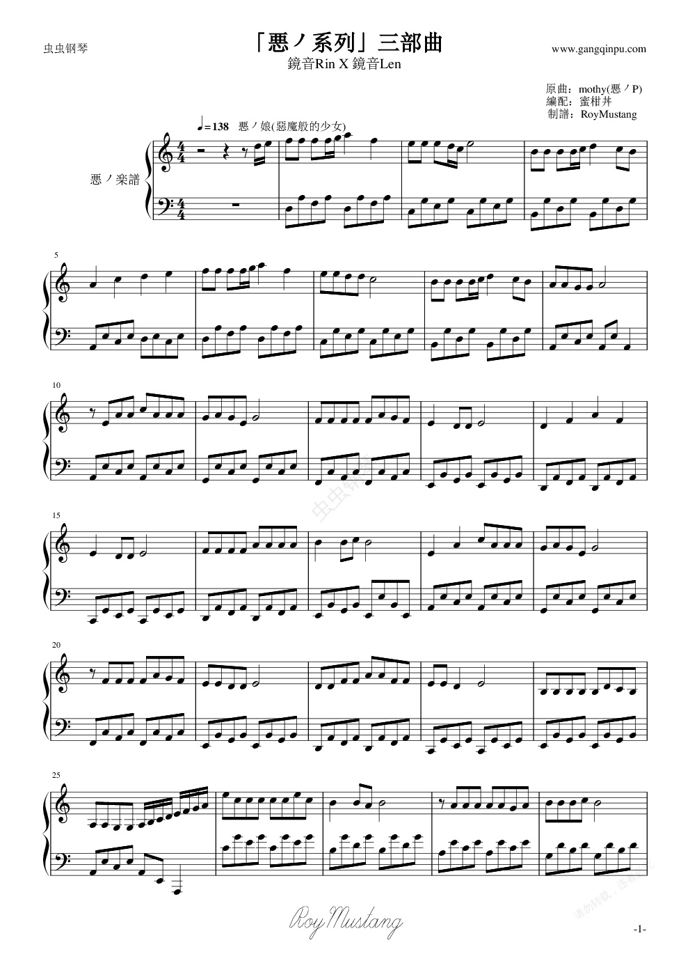钢琴谱:[鏡音雙子]惡之系列三部曲