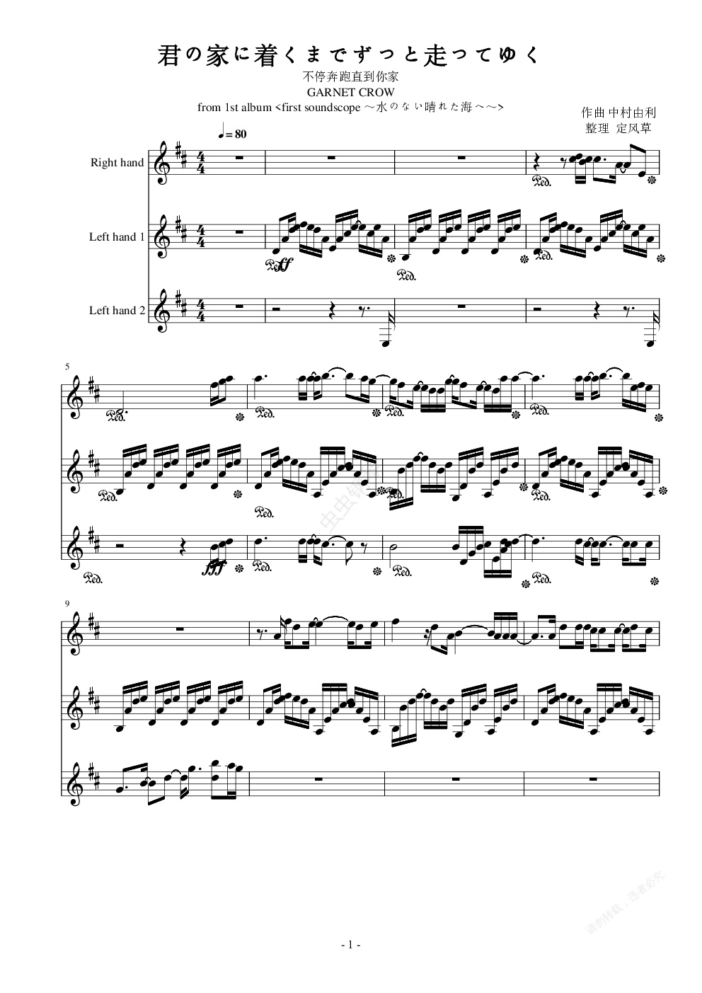 钢琴谱:君の家に着くまでずっと走ってゆく