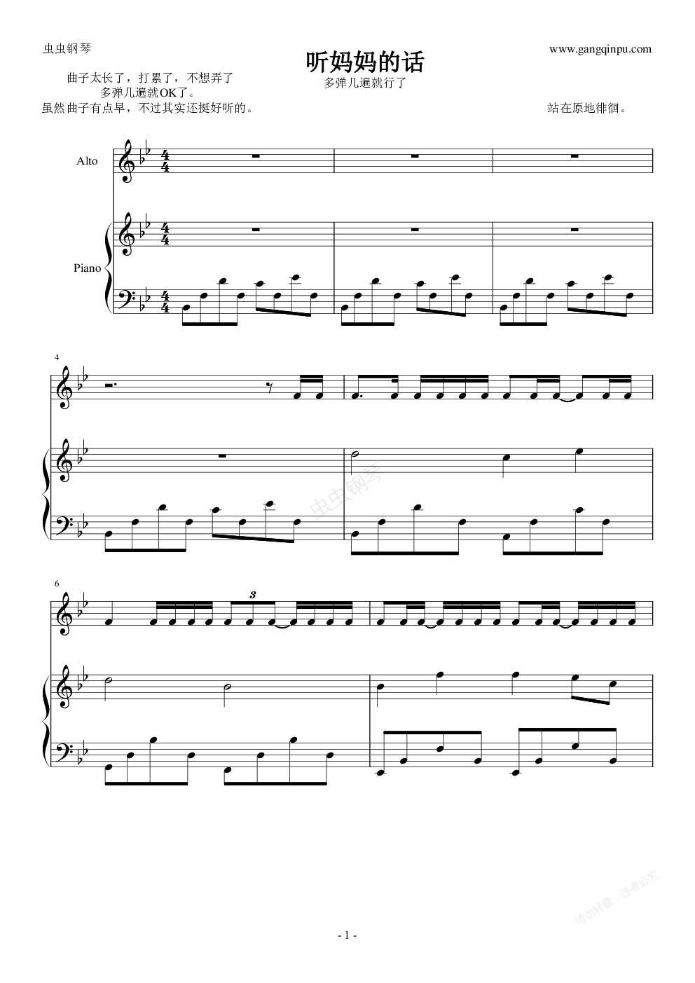 钢琴谱:听妈妈的话—弹唱版