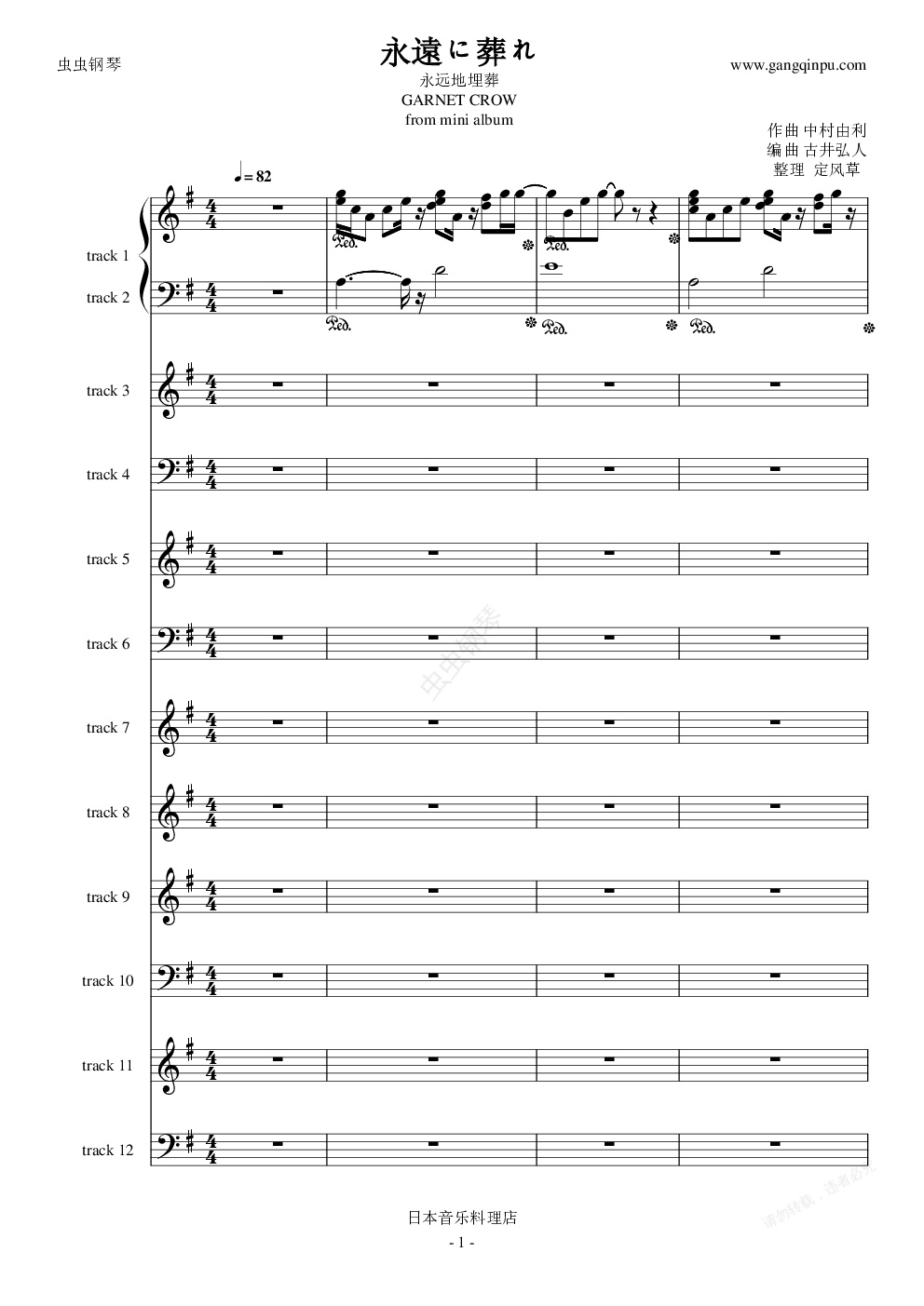钢琴谱:永遠に葬れ/ 永远地埋葬