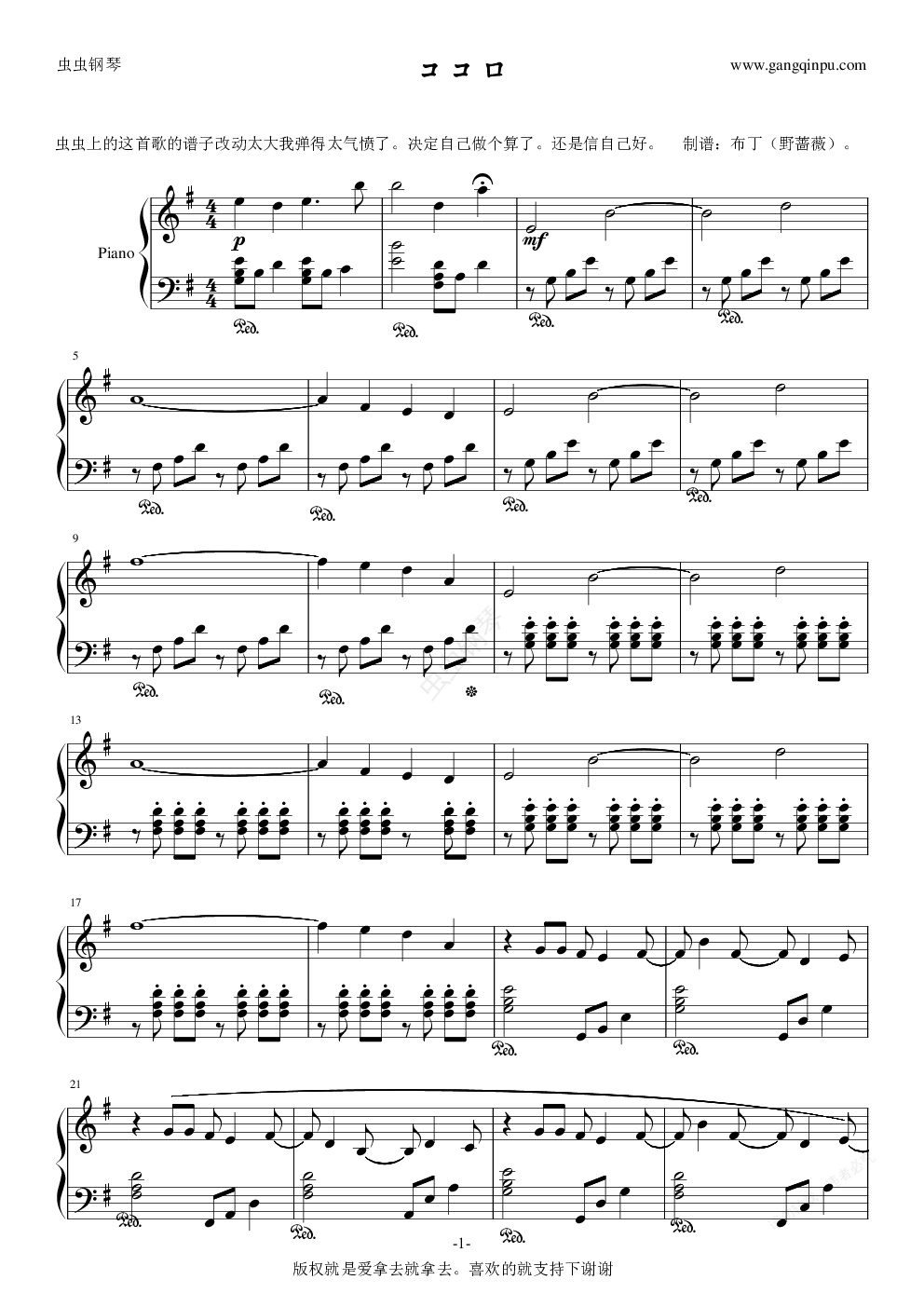 钢琴谱:ココロ
