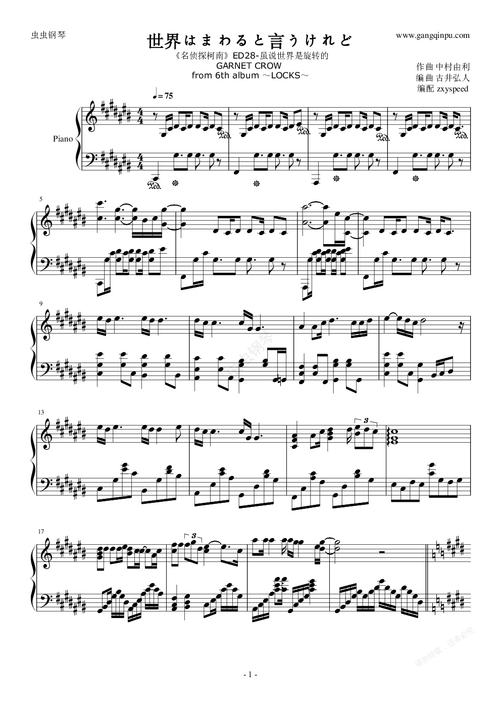 钢琴谱:世界はまわると言うけれど-柯南片尾曲