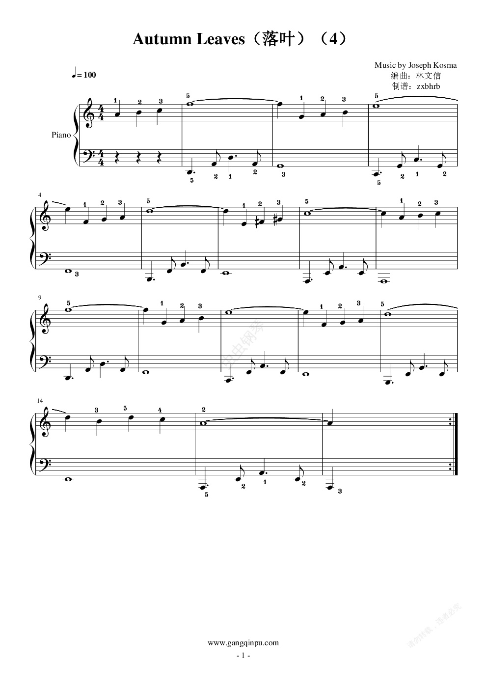 钢琴谱:《Autumn Leaves(落叶)(4)》指法