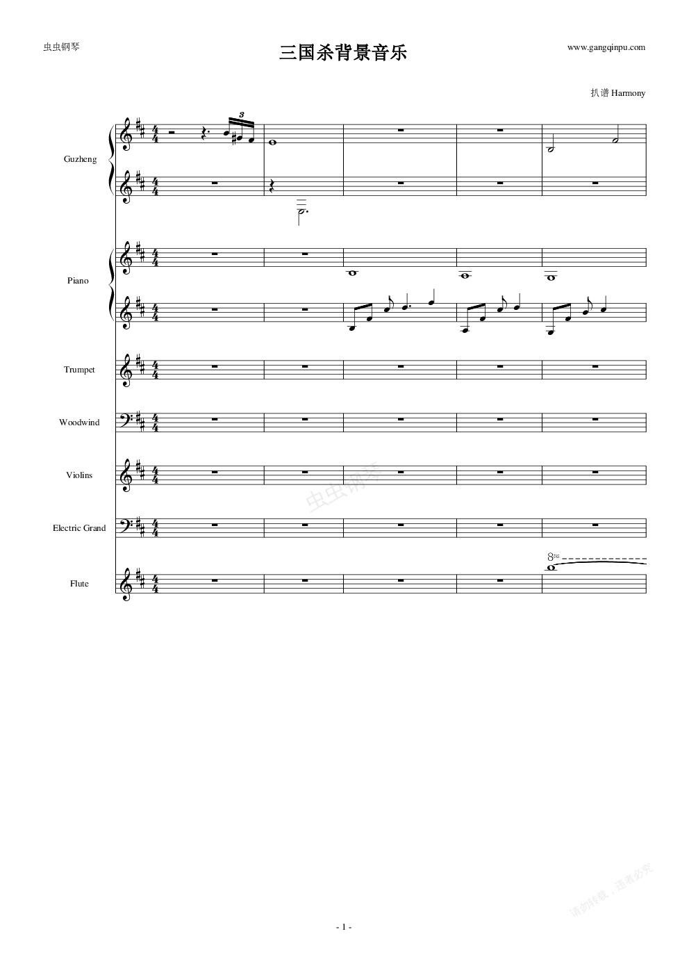 钢琴谱:三国杀背景音乐
