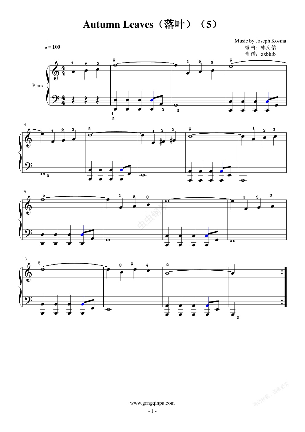 钢琴谱:《Autumn Leaves(落叶)(5)》-指法