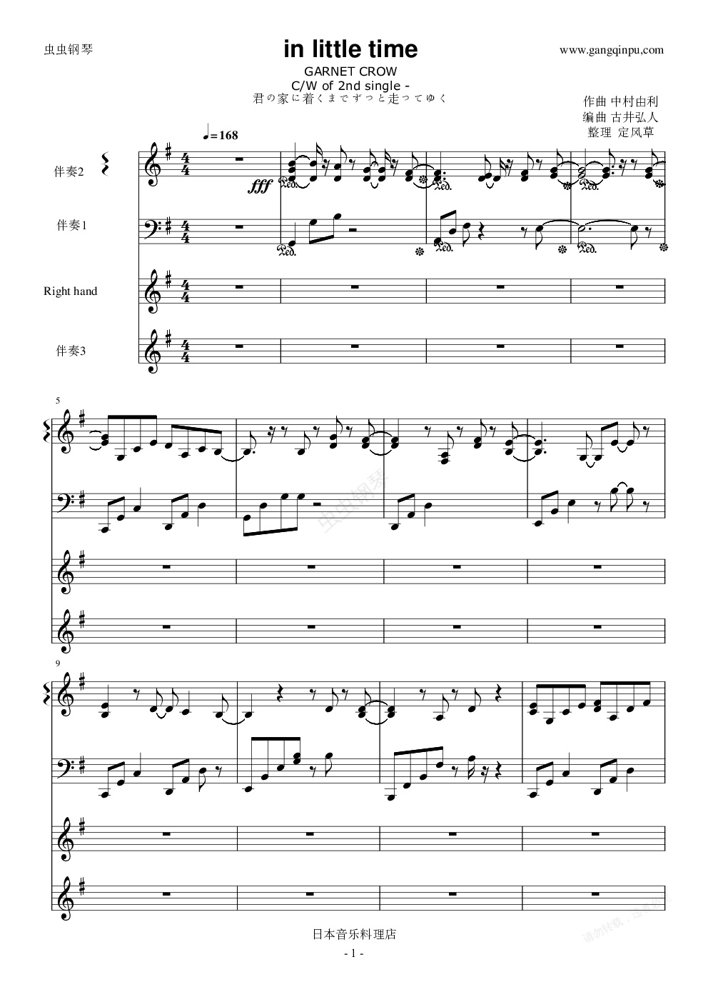 钢琴谱:in little time-GARNET CROW-柯南歌手