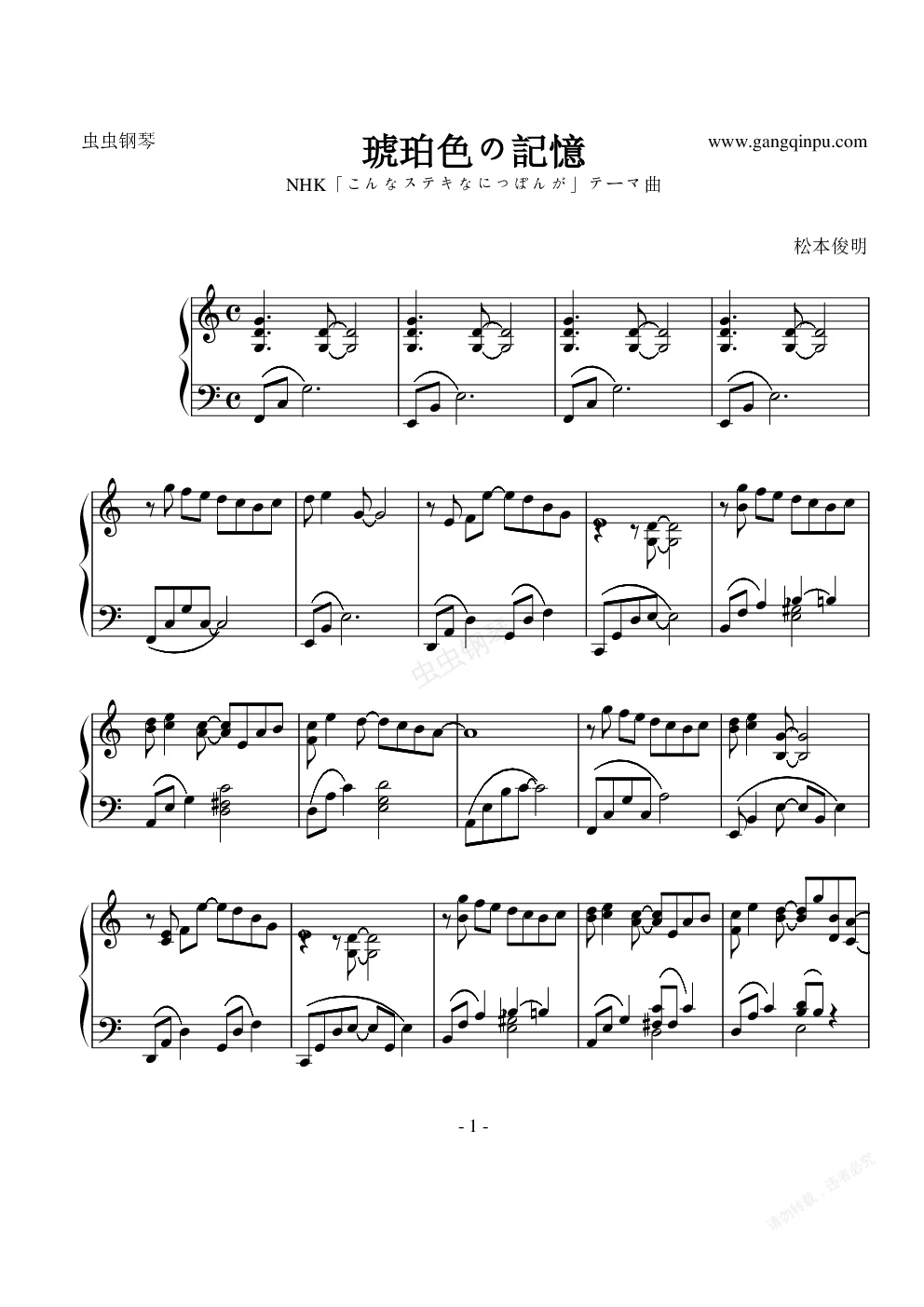 钢琴谱:琥珀色の記憶-松本俊明