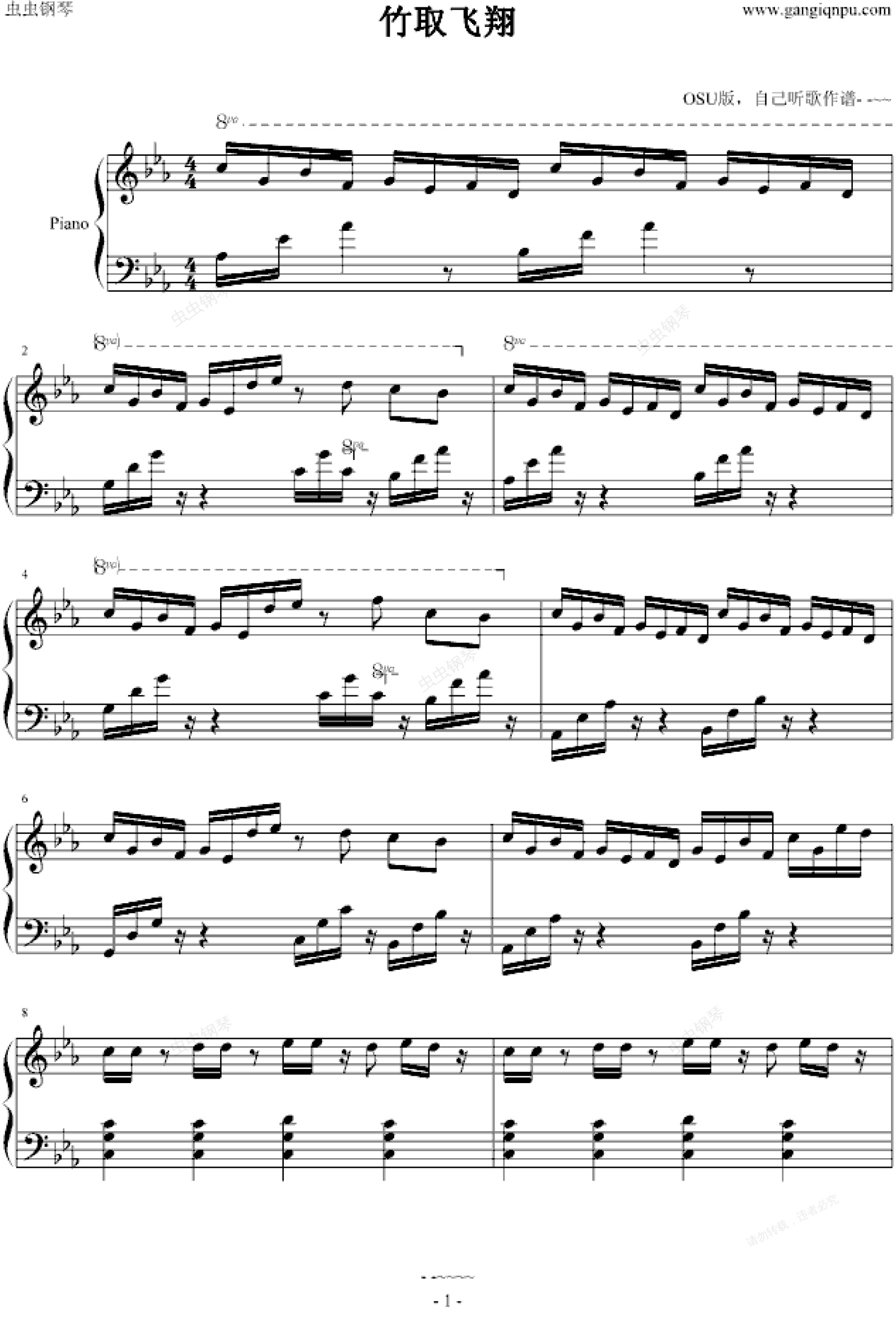 钢琴谱:竹曲飞翔(蓬莱山辉夜BGM OSU版)