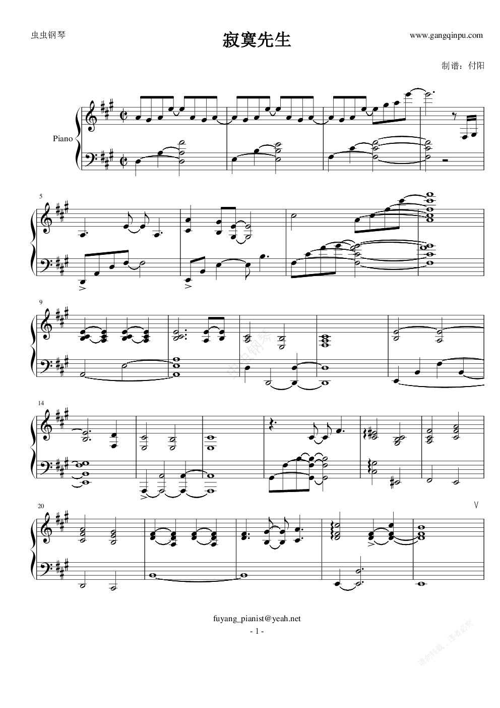 钢琴谱:寂寞先生