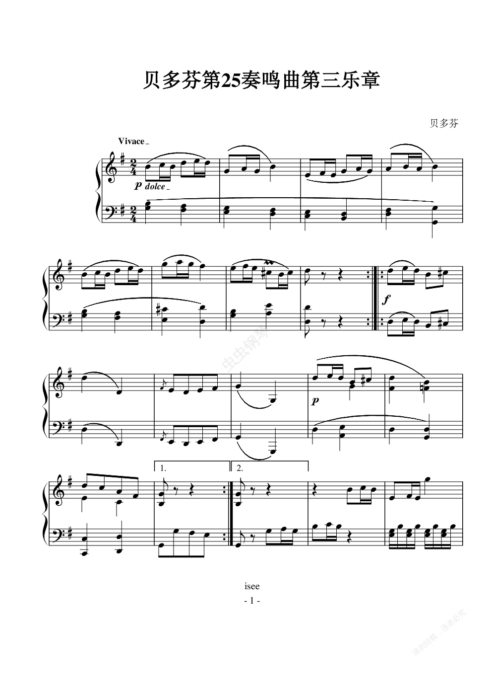 钢琴谱:贝多芬第25奏鸣曲第三乐章