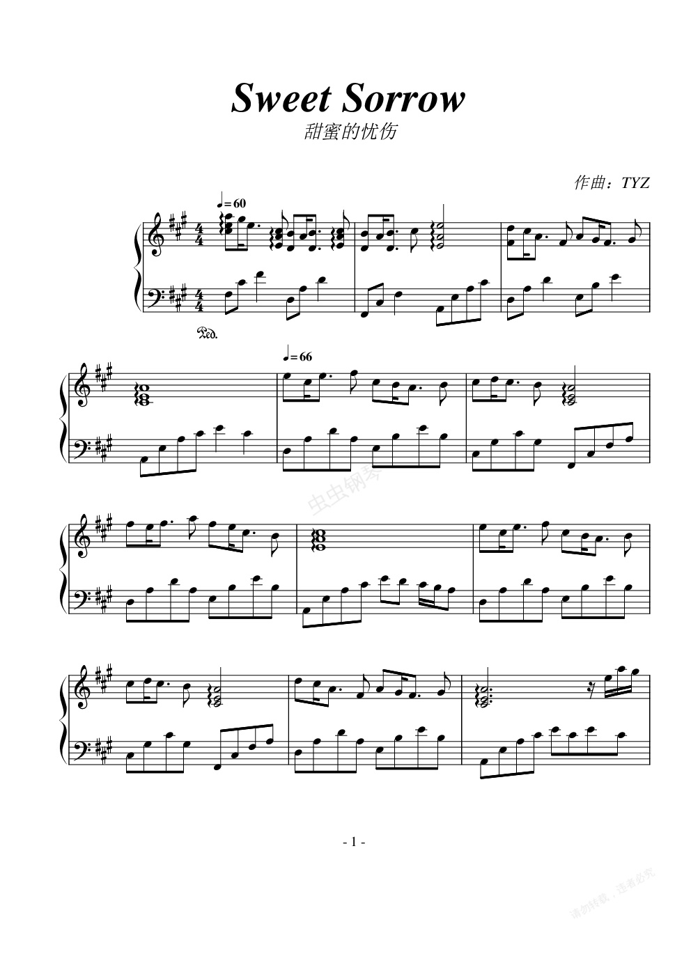 钢琴谱:Sweet Sorrow