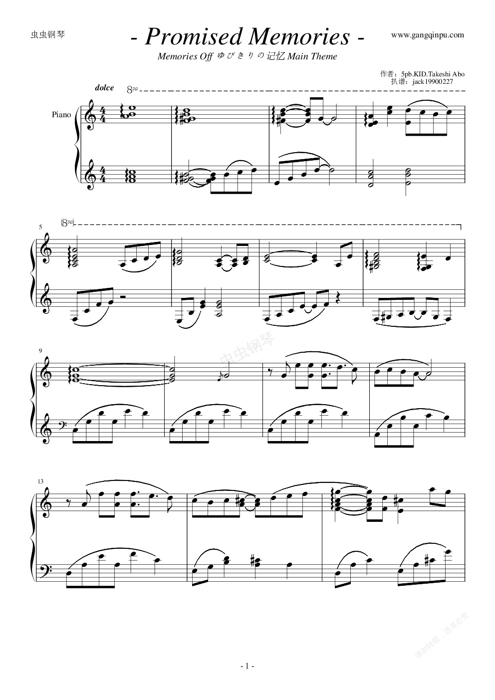 钢琴谱:【秋之回忆7】Theme Promised Memories