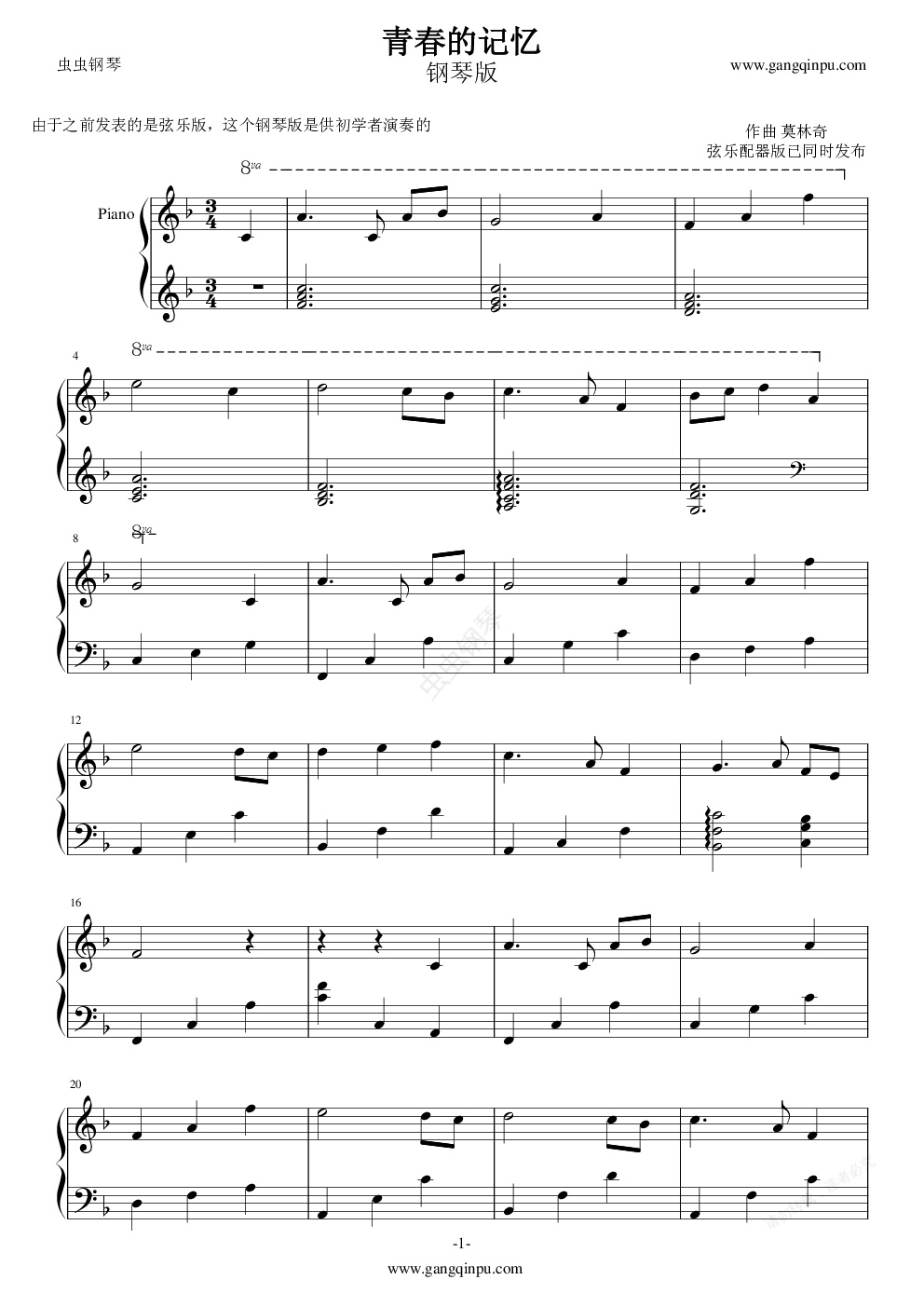 钢琴谱:青春的记忆钢琴演奏谱
