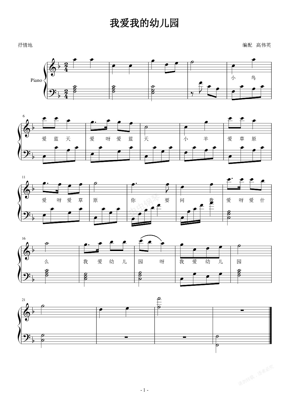 钢琴谱:我爱我的幼儿园