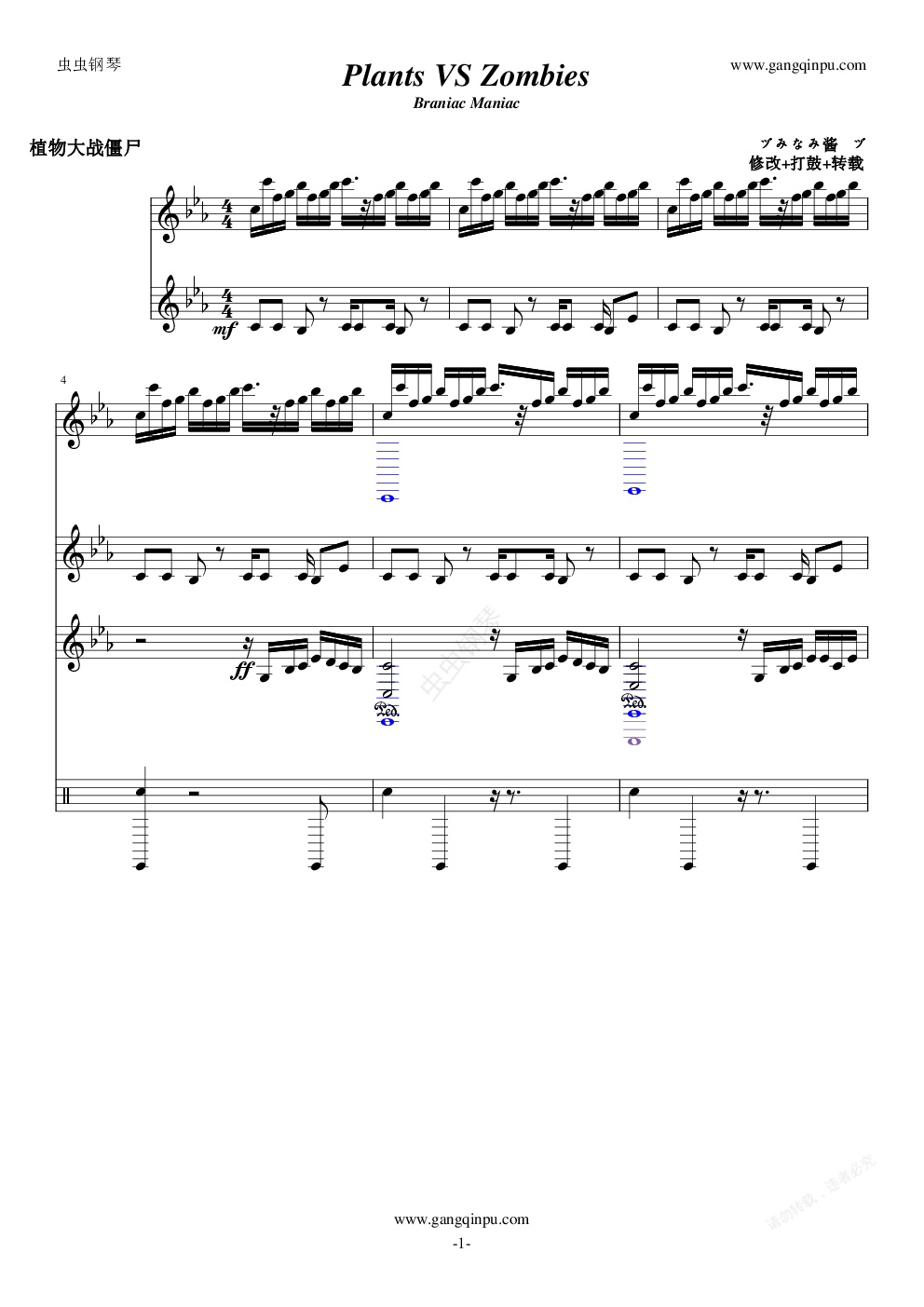 钢琴谱:植物大战僵尸-Braniac Maniac