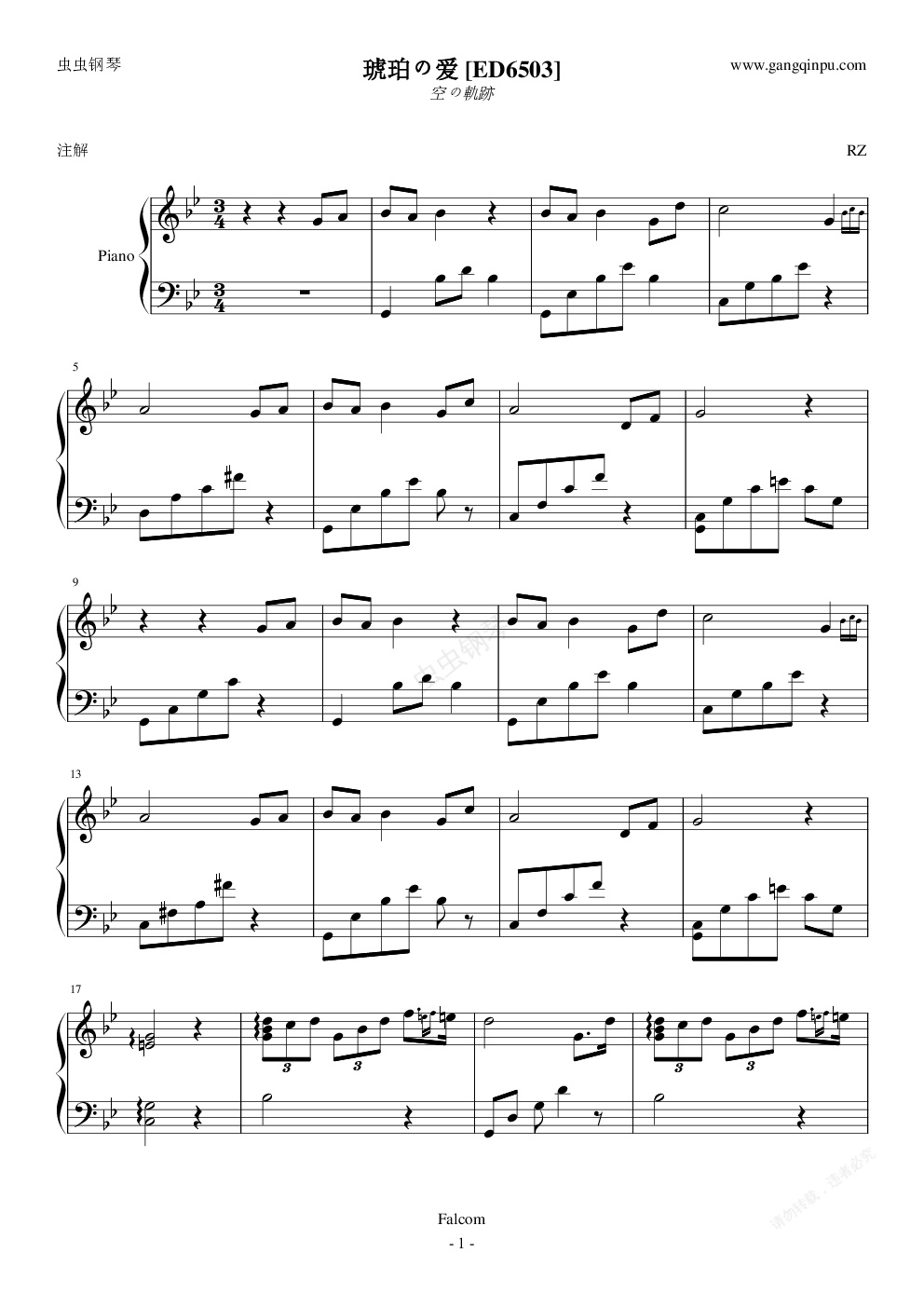 钢琴谱:空之轨迹 琥珀之爱 ED6503