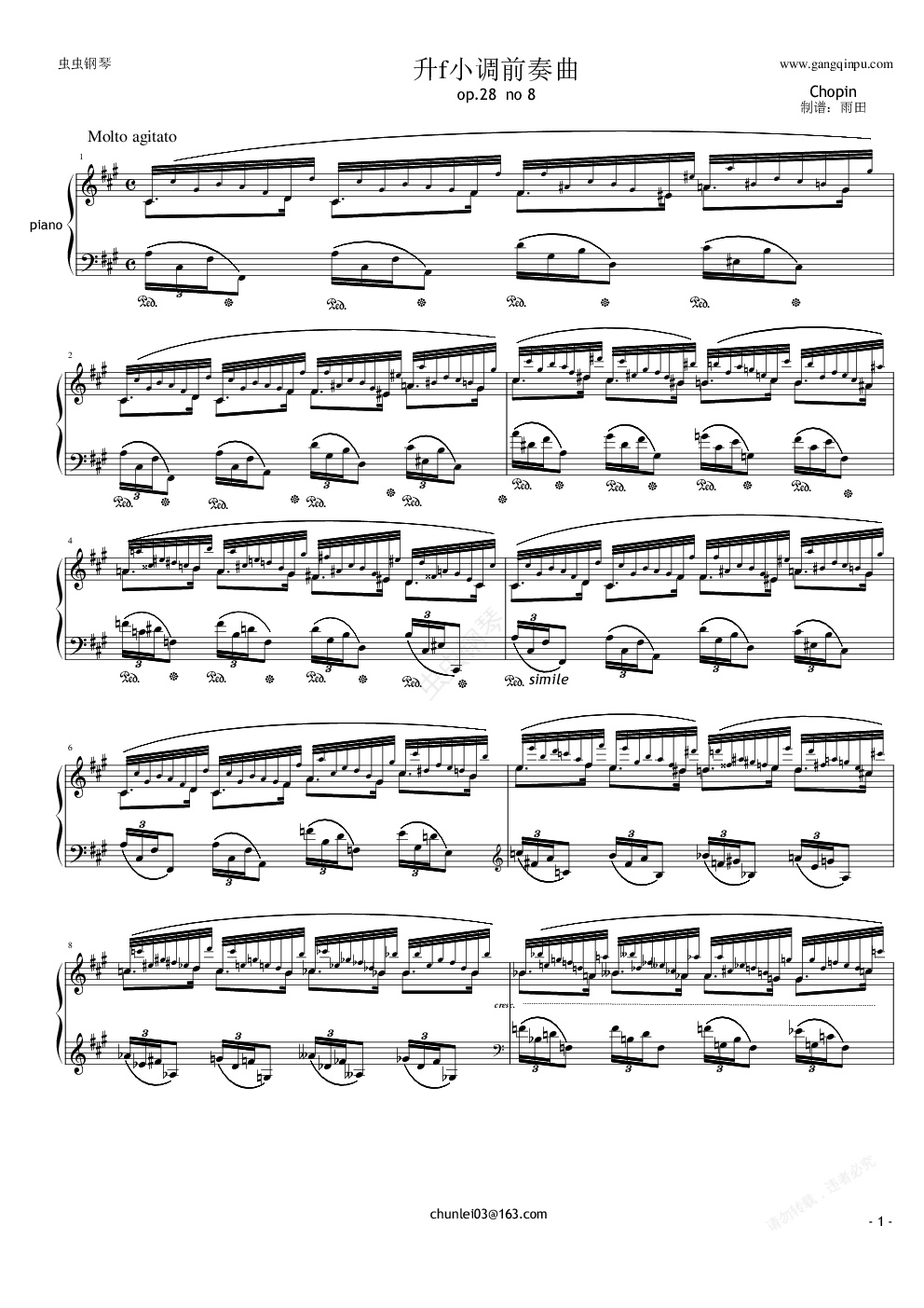 钢琴谱:肖邦《升f小调前奏曲》OP28_no8