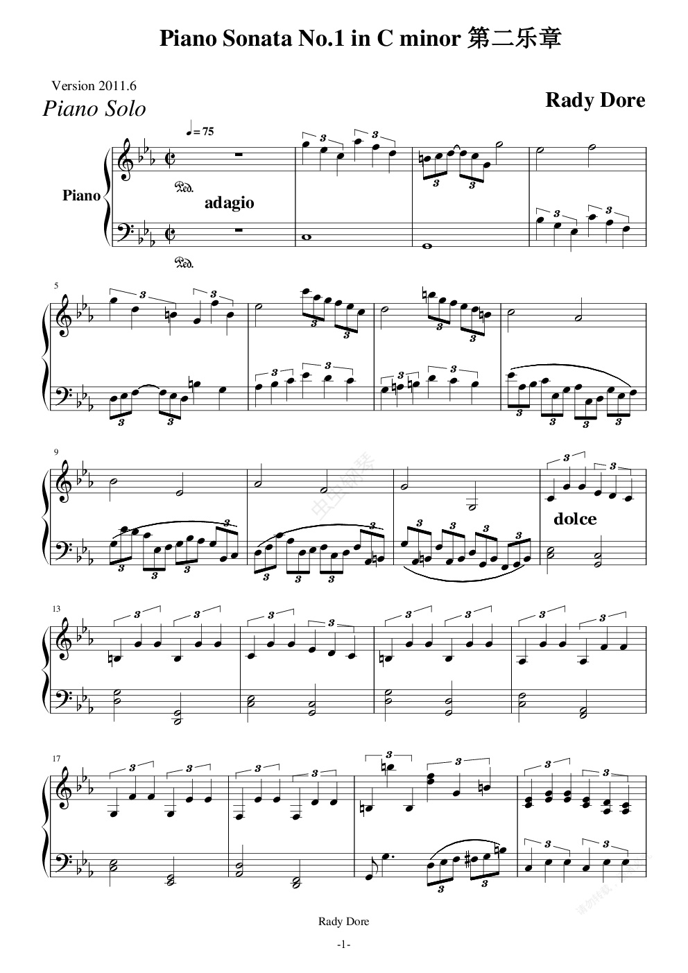 钢琴谱:C小调第一钢琴奏鸣曲第二乐章(Ver 2011.6)