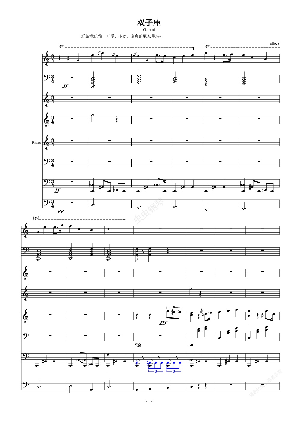 送给我的冤家星座双子座~好长的谱子啊……破记录啦……