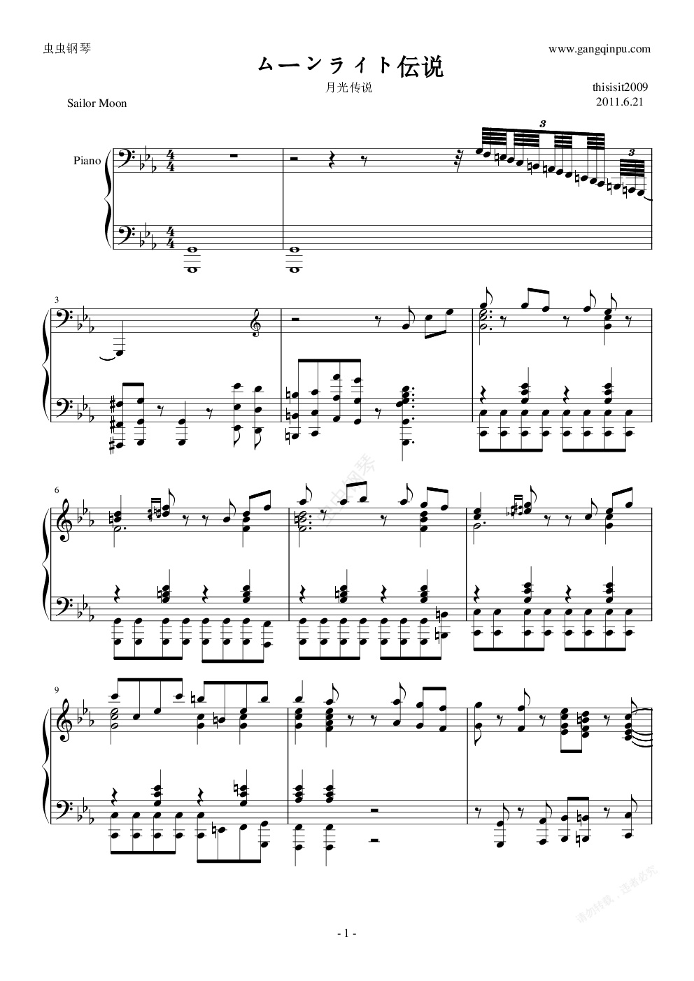 钢琴谱:美少女战士主题曲《月光传说》四手