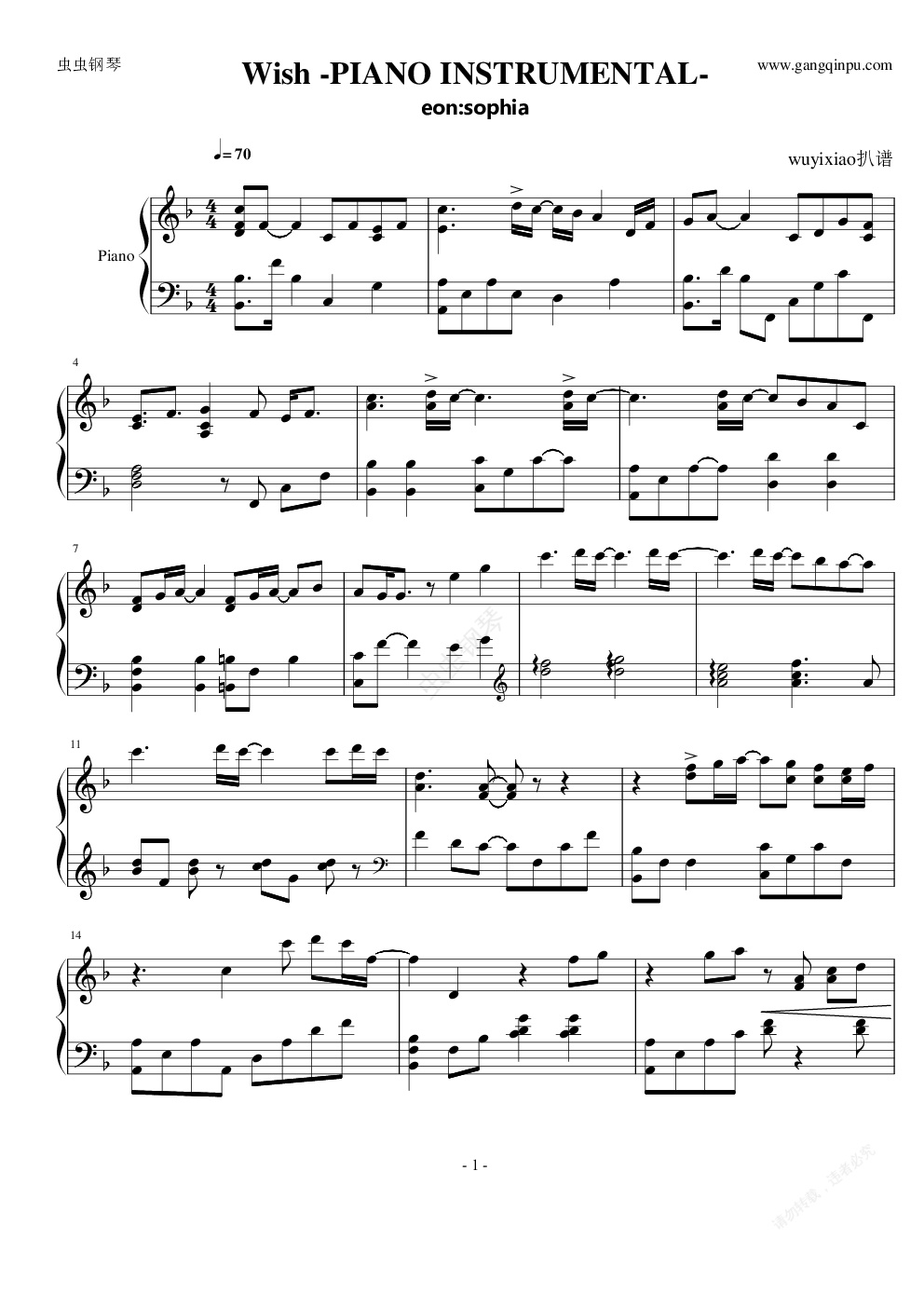 钢琴谱:Wish -PIANO INSTRUMENTAL-(eon:sophia)