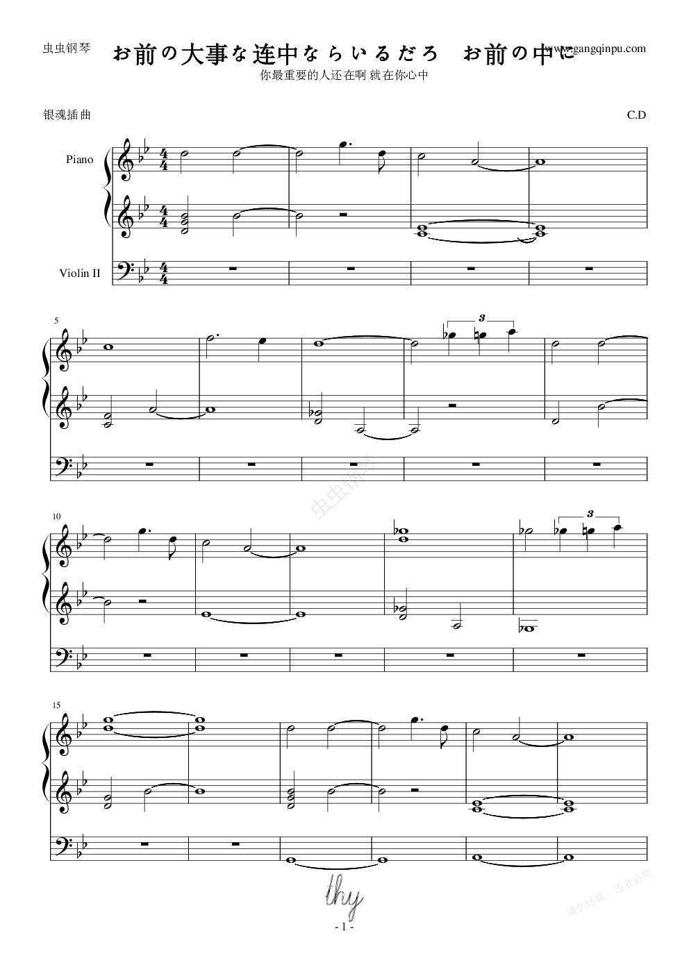 钢琴谱:【银魂插曲】お前の大事な连中ならいるだろ   お前の中に