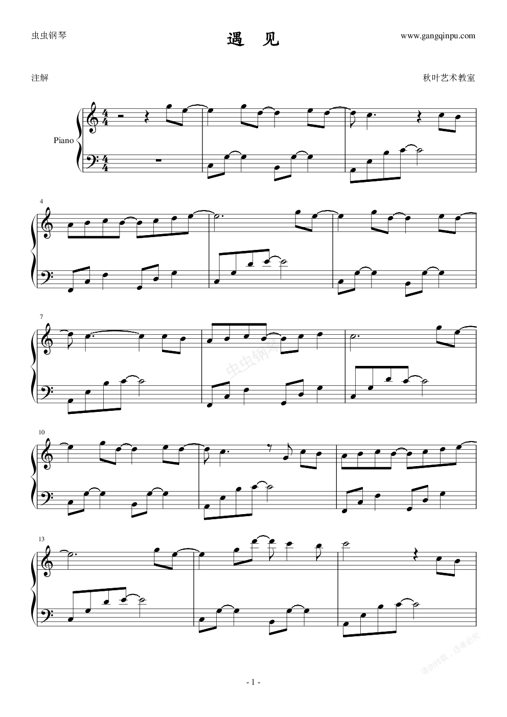 钢琴谱:遇见