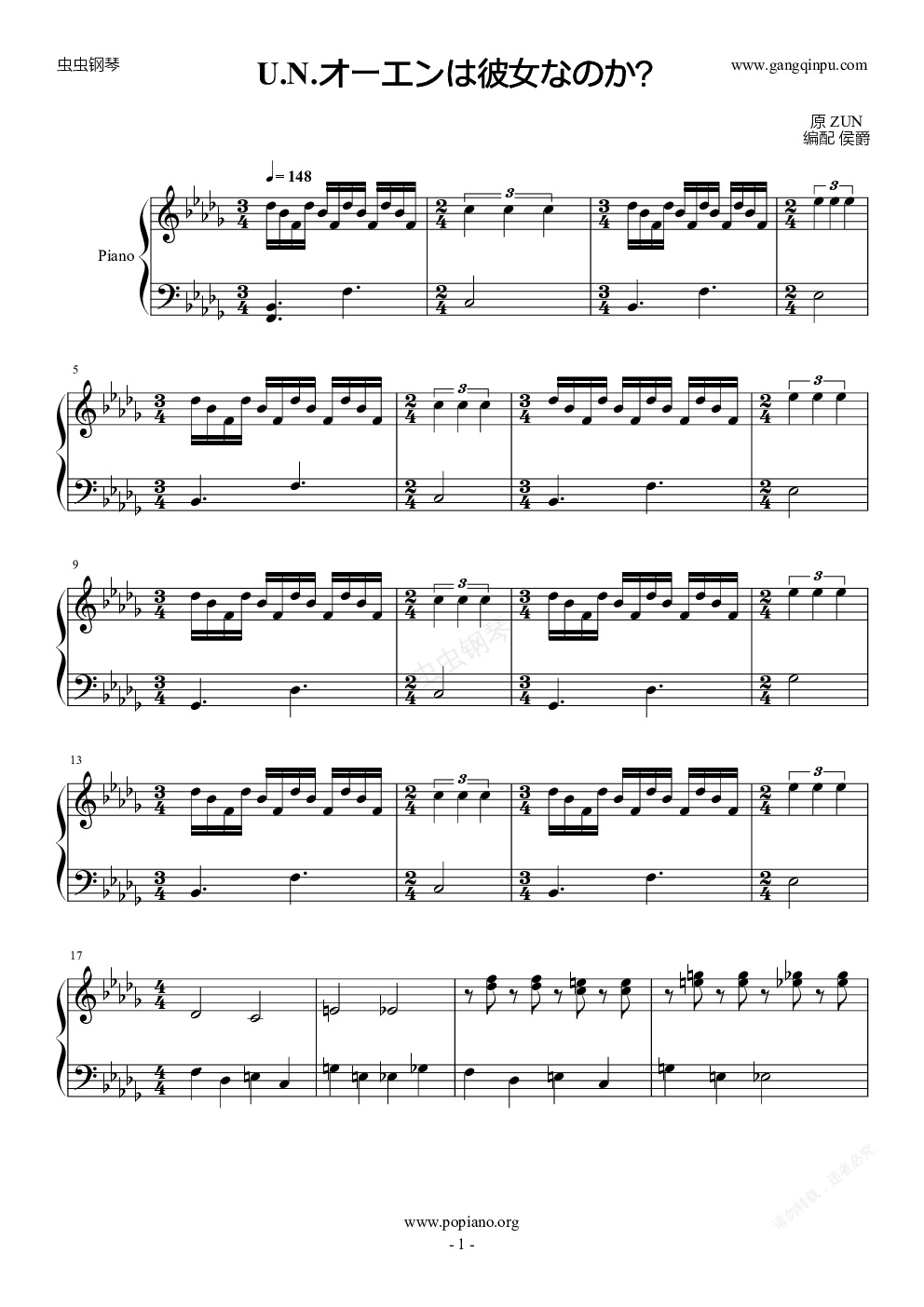 钢琴谱:【东方】~U.N.オーエンは彼女なのか?