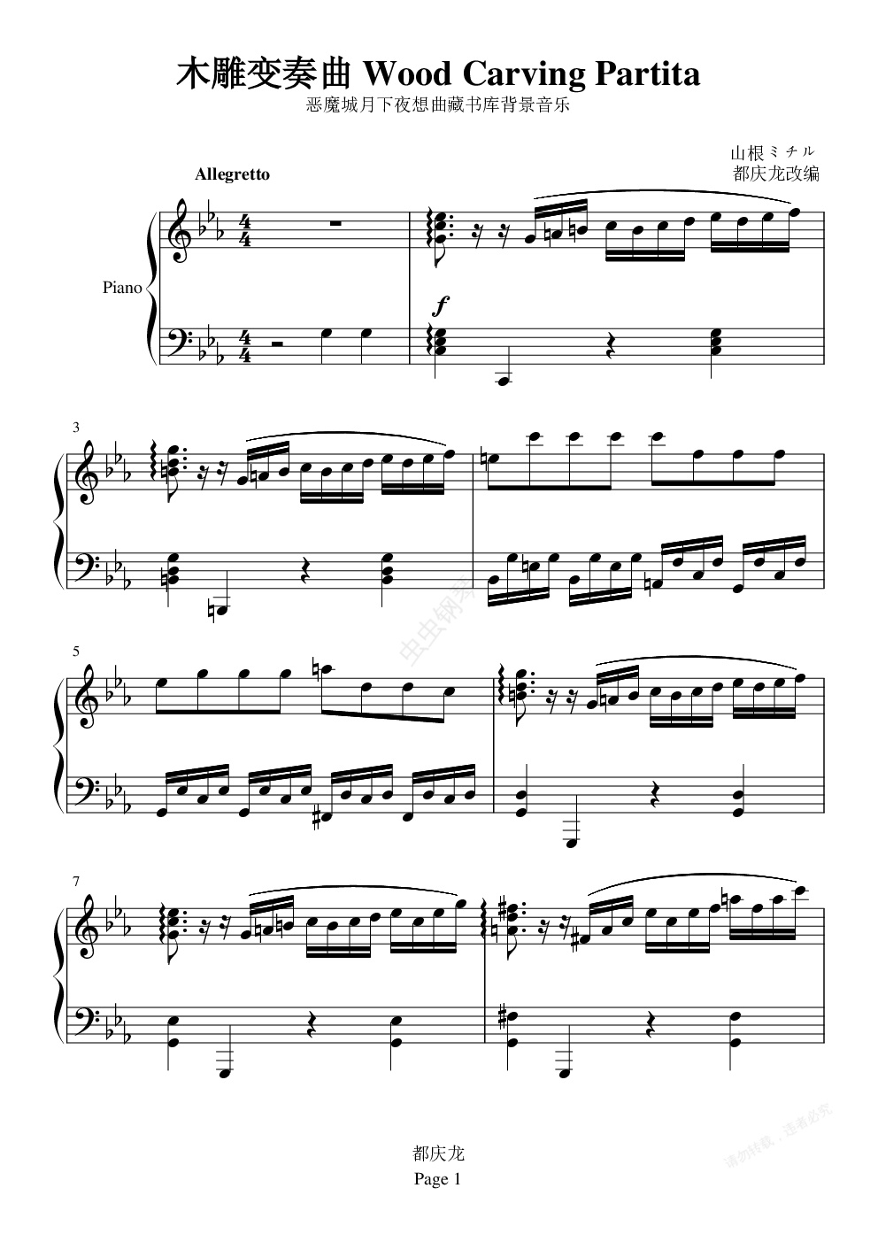 钢琴谱:恶魔城月下夜想曲木雕变奏曲