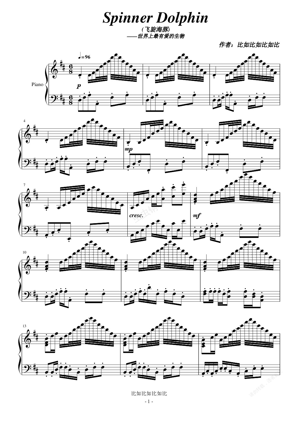钢琴谱:飞旋海豚