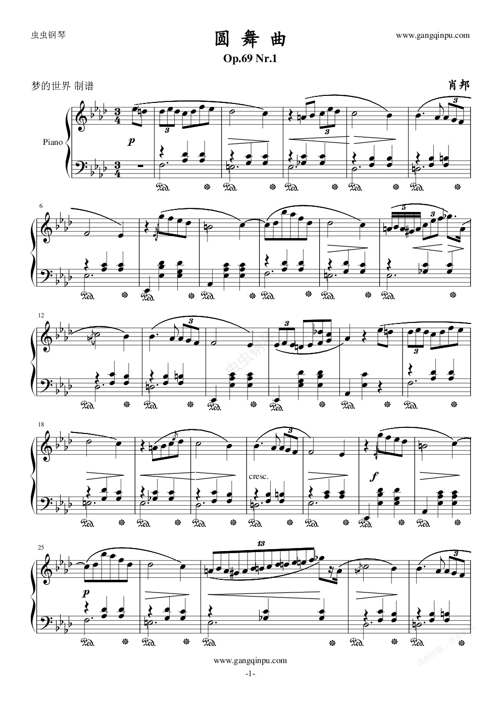 钢琴谱:第九号圆舞曲Op69-Nr1