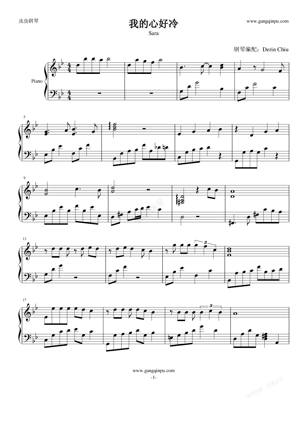 钢琴谱:我的心好冷