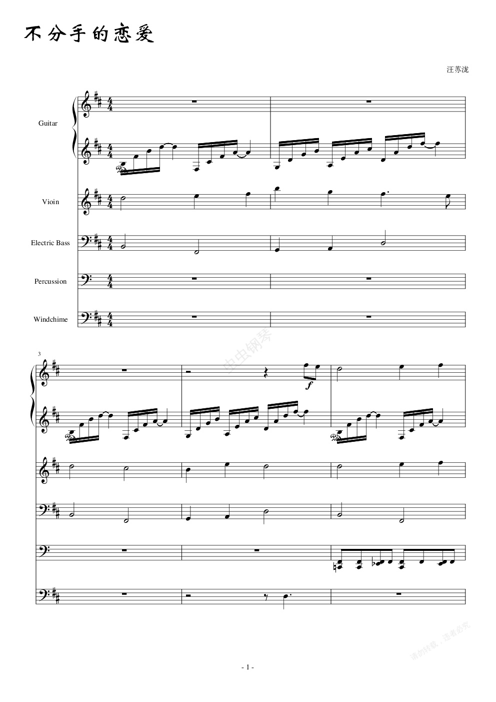 钢琴谱:不分手的恋爱