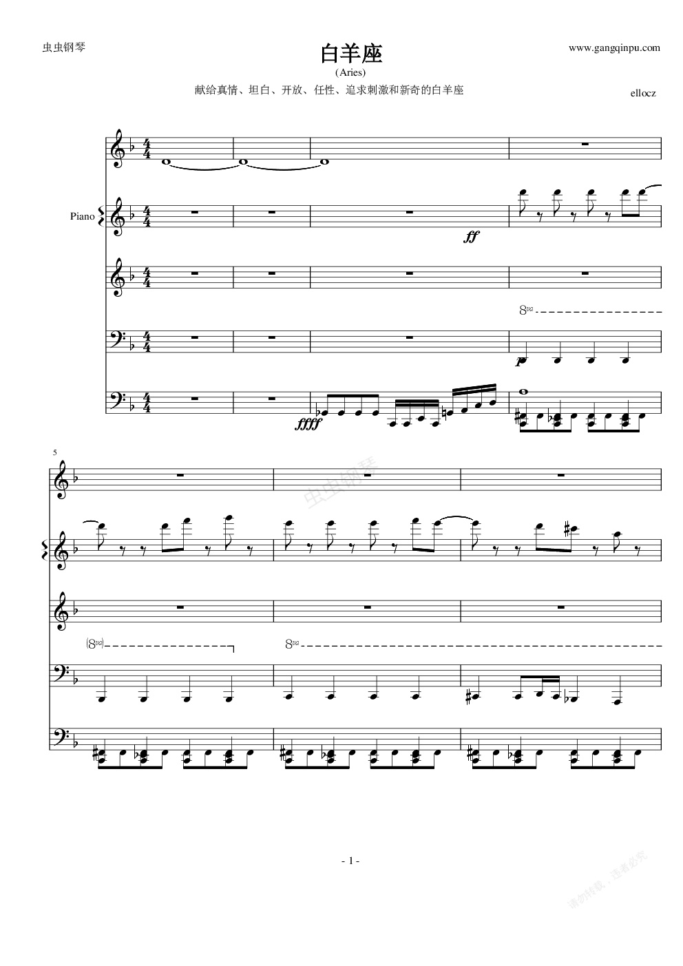 钢琴谱:白羊座(Aries)(超High)