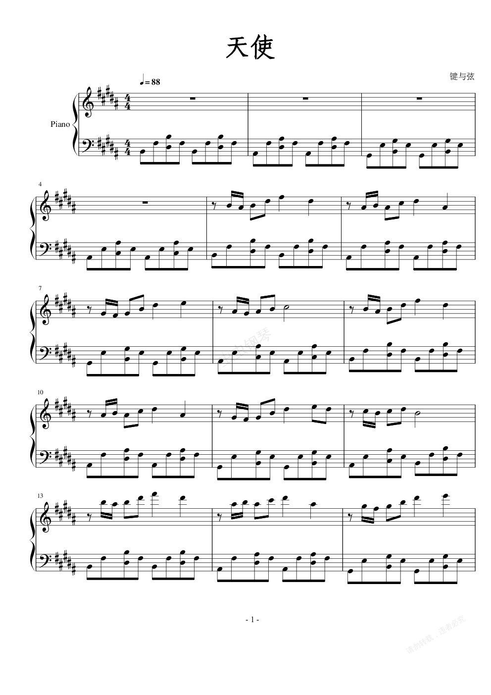 钢琴谱:另一个天使
