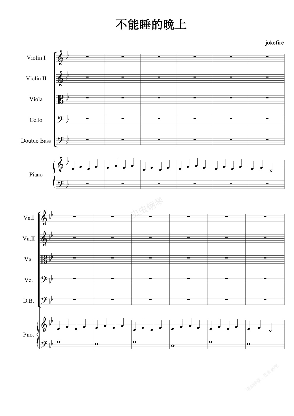钢琴谱:不能睡的晚上
