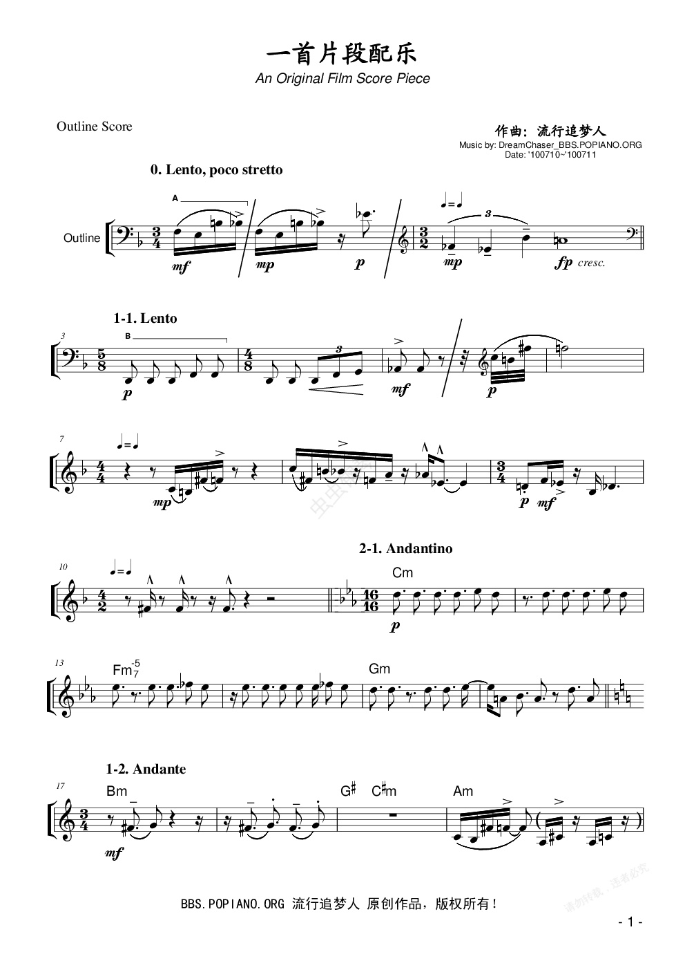钢琴谱:片段配乐