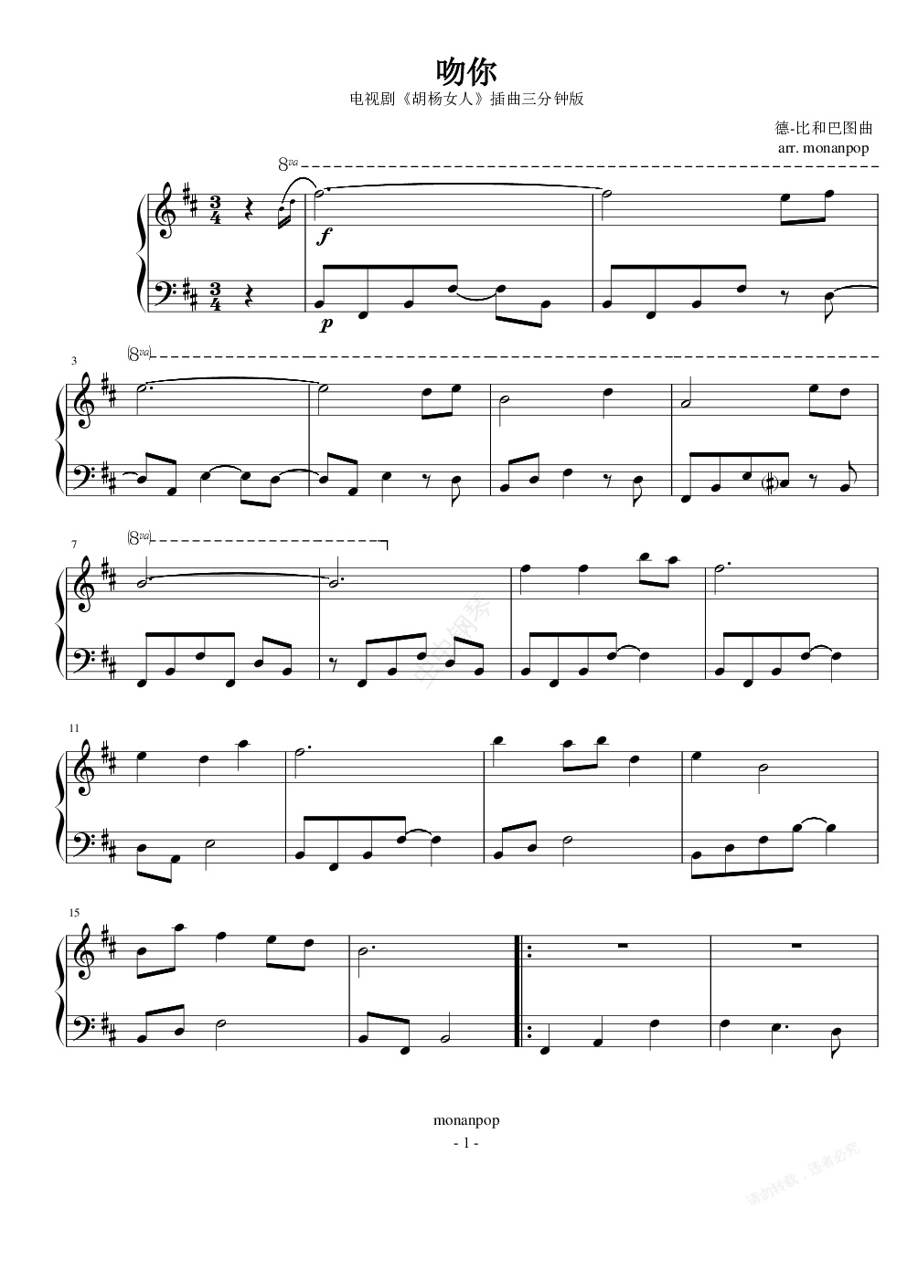 钢琴谱:《吻你》-电视剧《胡杨女人》插曲